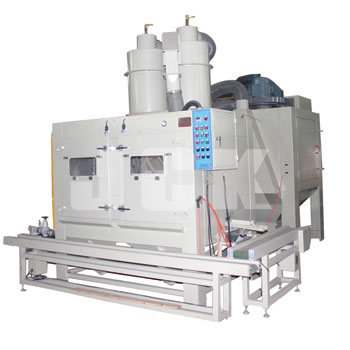 适合于平板类、盘类、四方体、型材及其他异形工件的喷砂加工,例如:平面不锈钢板材、普通钢板、玻璃钢板、石材、不粘锅、烤盘、多士炉、电脑机箱、功能DVD面板、笔记本、电脑主机板、电熨斗底板、装饰件、标牌徽章、通讯器材、铝板材、型材及其它异形件等。